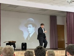 ПУШКИНСКАЯ КАРТА30 января в нашей гимназии для учеников 8-11 классов состоялся показ спектакля «Сергей Есенин.Строки». Артист театра «Вера» Дмитрий Суханов прочитал стихотворения великого русского поэта - Сергея Есенина. Музыка стихов Сергея Есенина умело сочетается с музыкальным сопровождением спектакля, раскрывая перед зрителями всю глубину его души и историю его жизни, творческих побед и терзаний, поиска самого себя. Все 40 минут в зале царило безмолвствие. Каждый из присутствующих погрузился в историю стихов и их сюжетную линию. Провожали артиста под громкие аплодисменты.